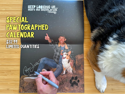 Special Pawtographed Calendar Includes Autographed Centerfold Poster in middle of Calendar by Gatsby (pawprint) and Ryen! For the ultimate Gatsby Corgi and VlogAfterCollege Fan! [extremely limited quantities]