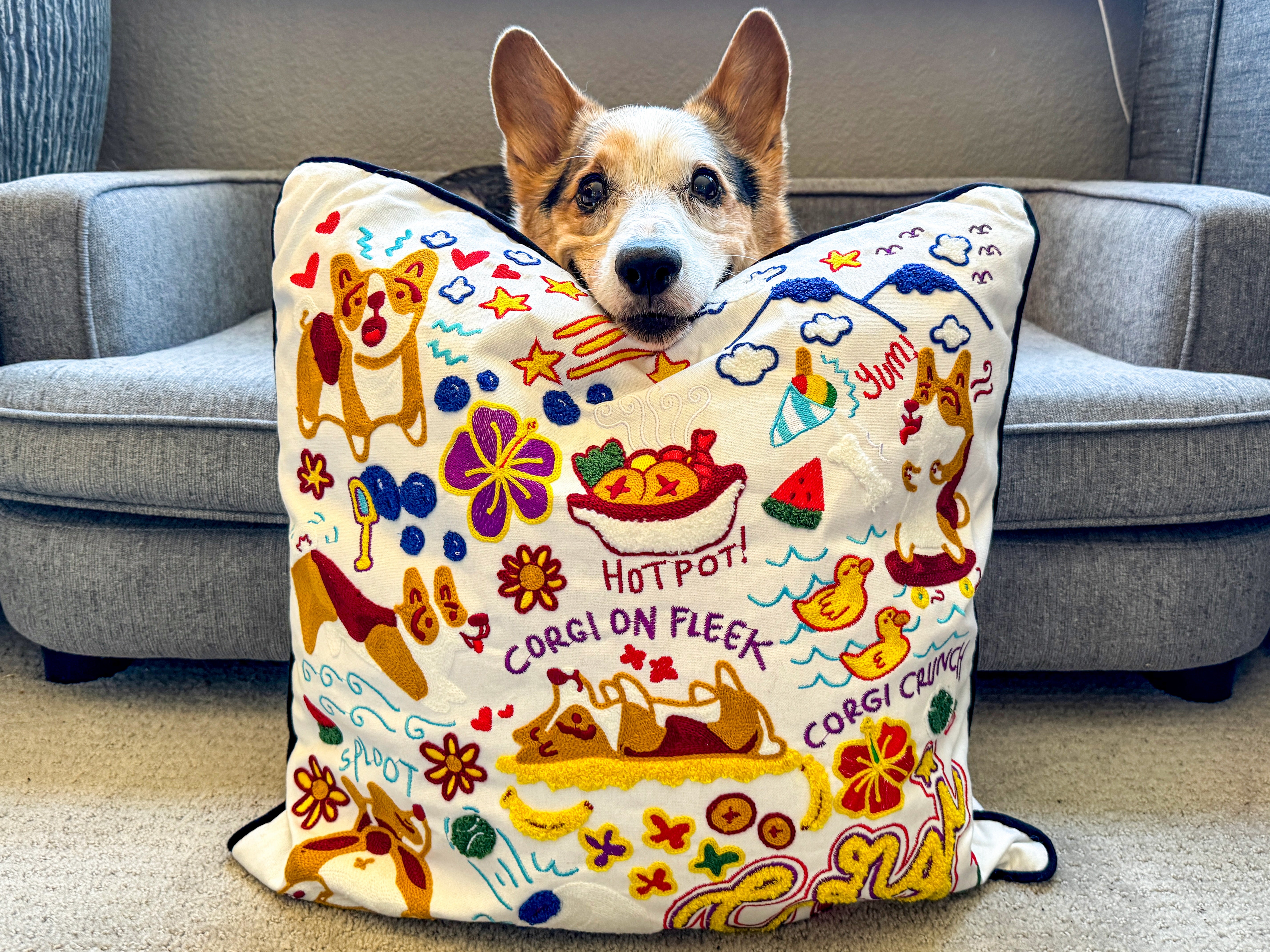 Corgi-fy your home with this charming super special corgi-shaped cushion! This adorable throw pillow is designed to be both a charming accent and a cozy companion, perfect for any couch, bed, or reading nook. Made from high quality materials and using a high quality hook-loop method for a unique look and feel!