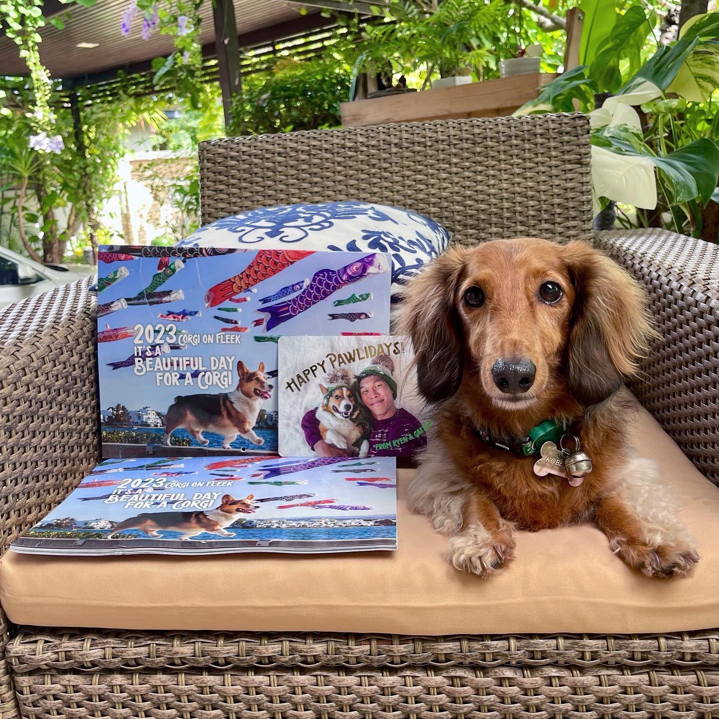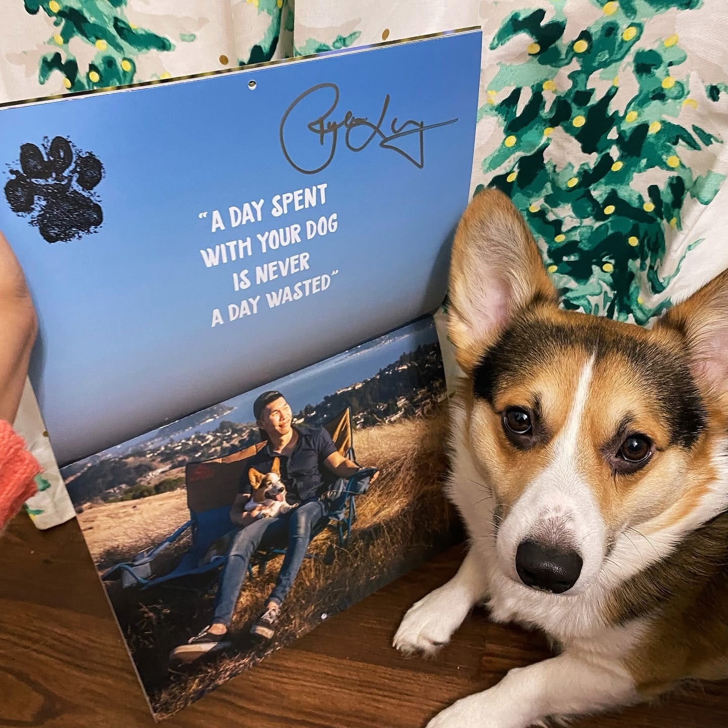Special Pawtographed Calendar Includes Autographed Centerfold Poster in middle of Calendar by Gatsby (pawprint) and Ryen! For the ultimate Gatsby Corgi and VlogAfterCollege Fan! [extremely limited quantities]