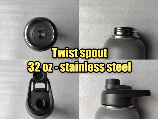 - Twist spout protects mouth piece (screw on lid)