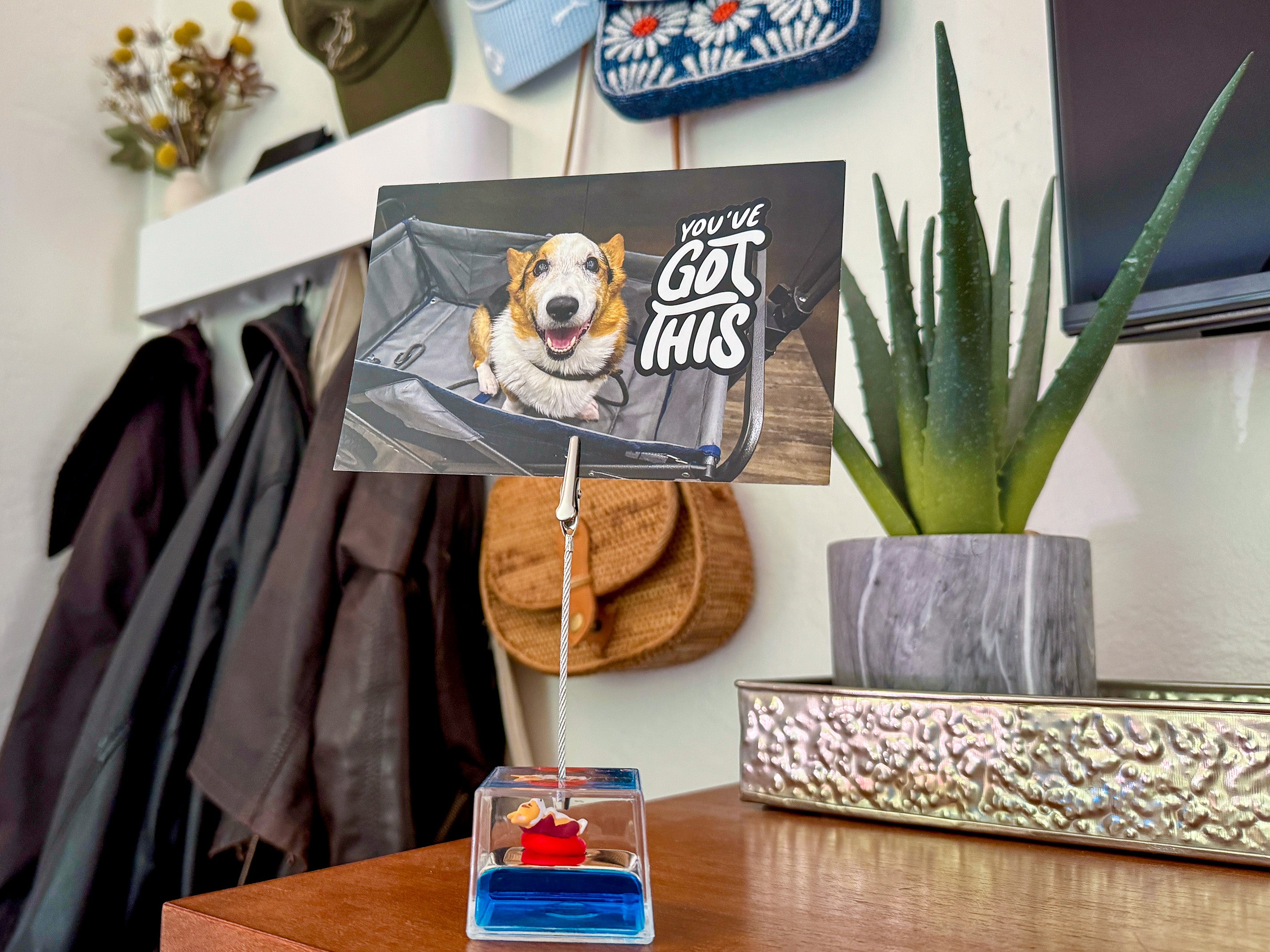 Bundle & Save Ray of Sunshine Club subscription and Clip Holder Bundle: Includes one Liquid Card Holder and one membership subscription to the Ray of Sunshine Club. Receive free domestic shipping and a new uplifting postcard every month to clip and enjoy!
